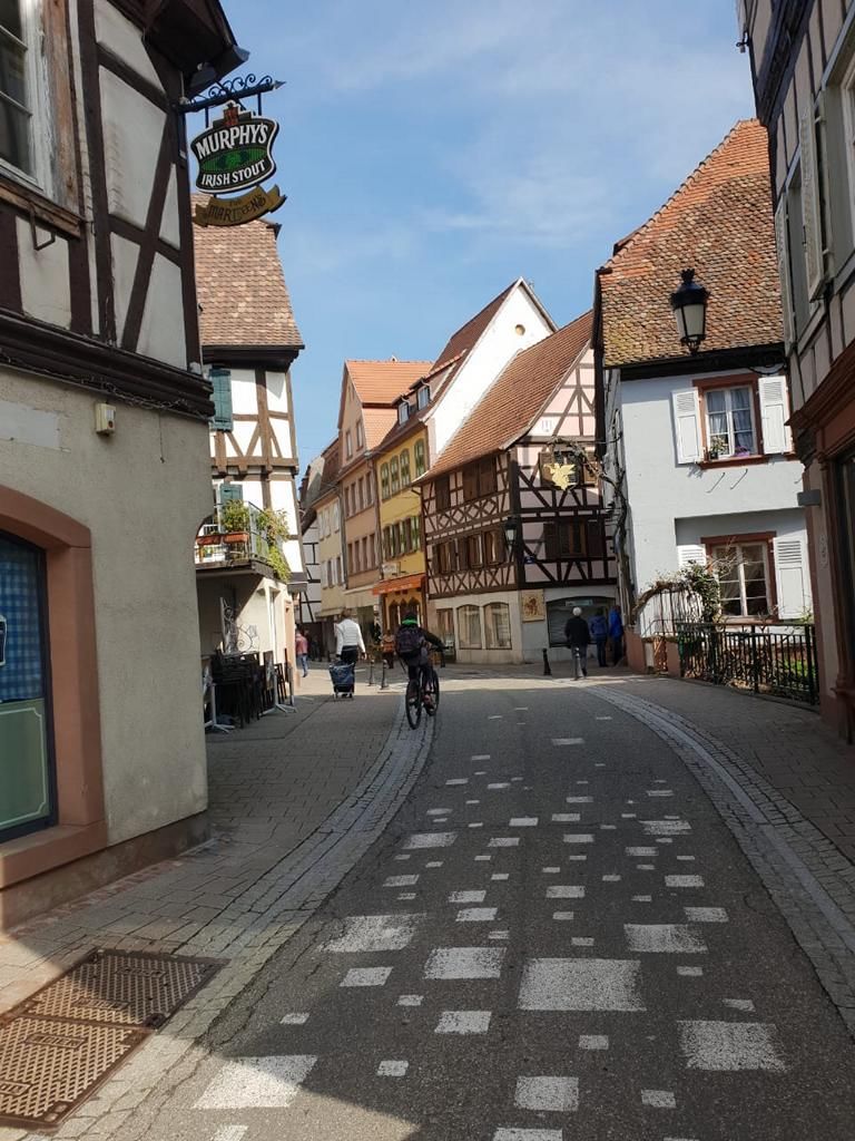 Trotzdem war für die Freundschaftsgesellschaft ein Wochenende 06.04. und 07. 04. Zeit für zwei gemeinsame Ausflüge eingeplant. Dieter Kammerer und Herbert Huber übernahmen diese Aufgabe. Am Samstag, 06.04.ging es mit der Bahn in das gemütliche französische Grenzstädtchen Weißenburg, das man von Karlsruhe aus nach schöner Fahrt durch Pfalz und Elsass schnell erreichen konnte. Bewundert wurden die engen malerischen Gassen, der Bauernmarkt und die schönen alten Fachwerkhäuser an der Lauter; ganz besonders aber die ehrwürdige Kathedrale mit schönen Fenstern und antiken Fresken. Natürlich genossen wir bei Sonnenschein im Gartenrestaurant die bekannte Elsässer Küche und den Gewürztraminer.